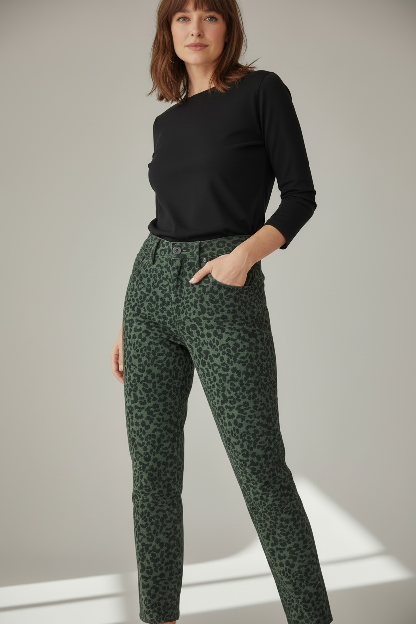 49,90 €Pantalón micro pana animal print verde.