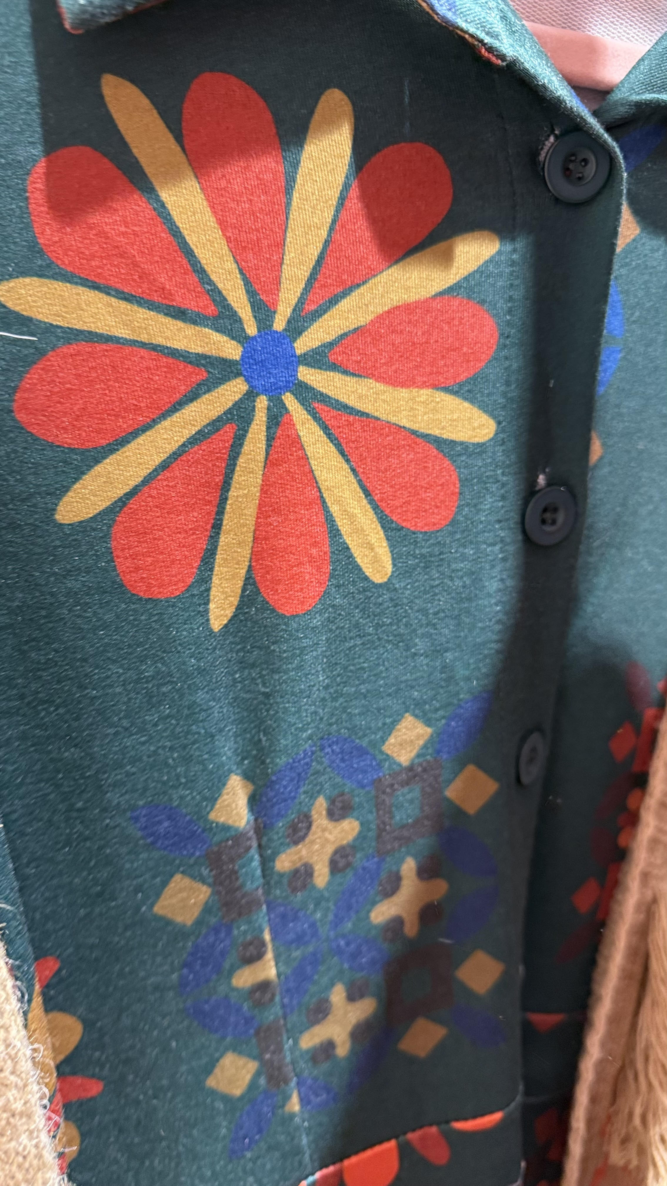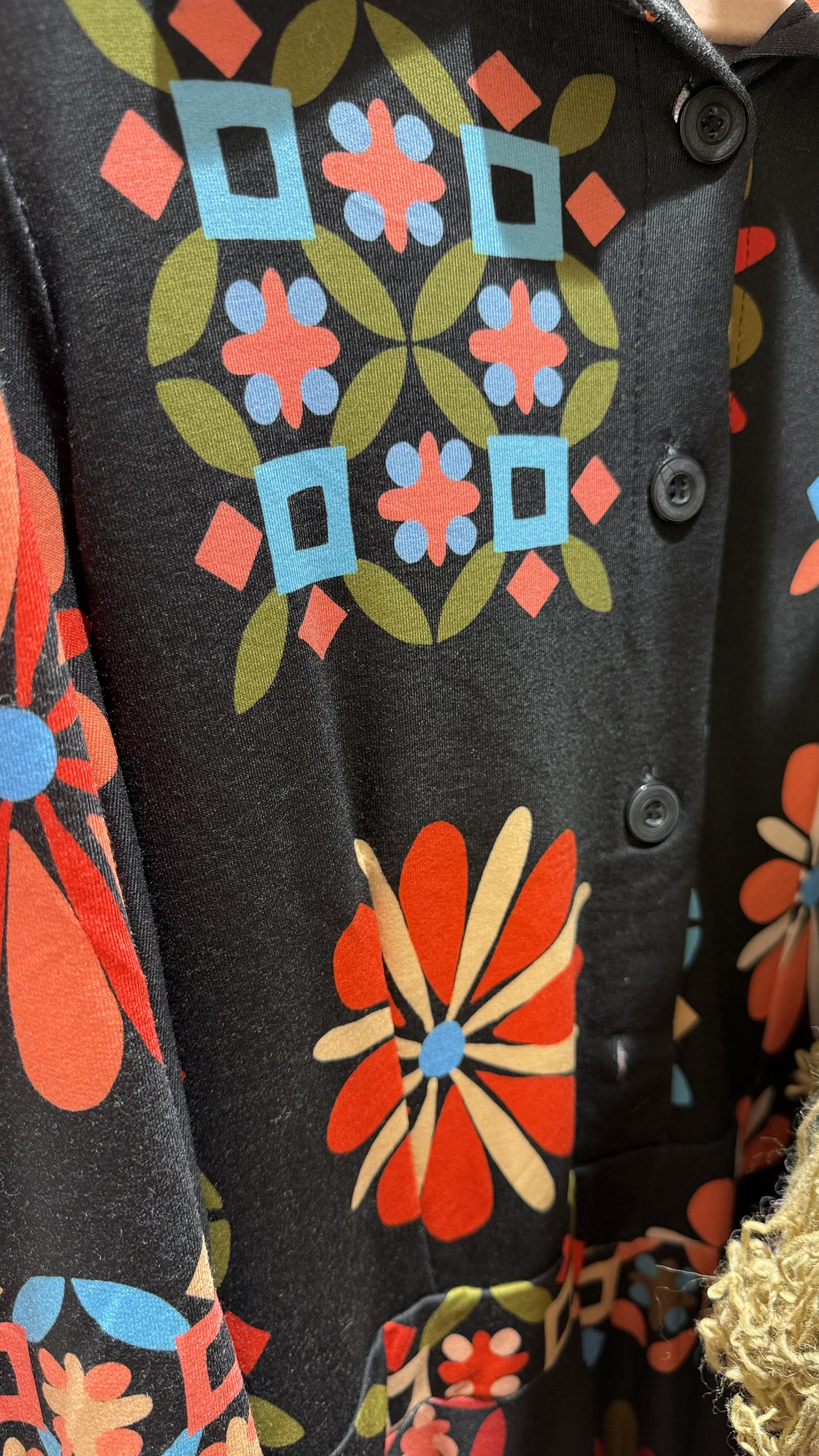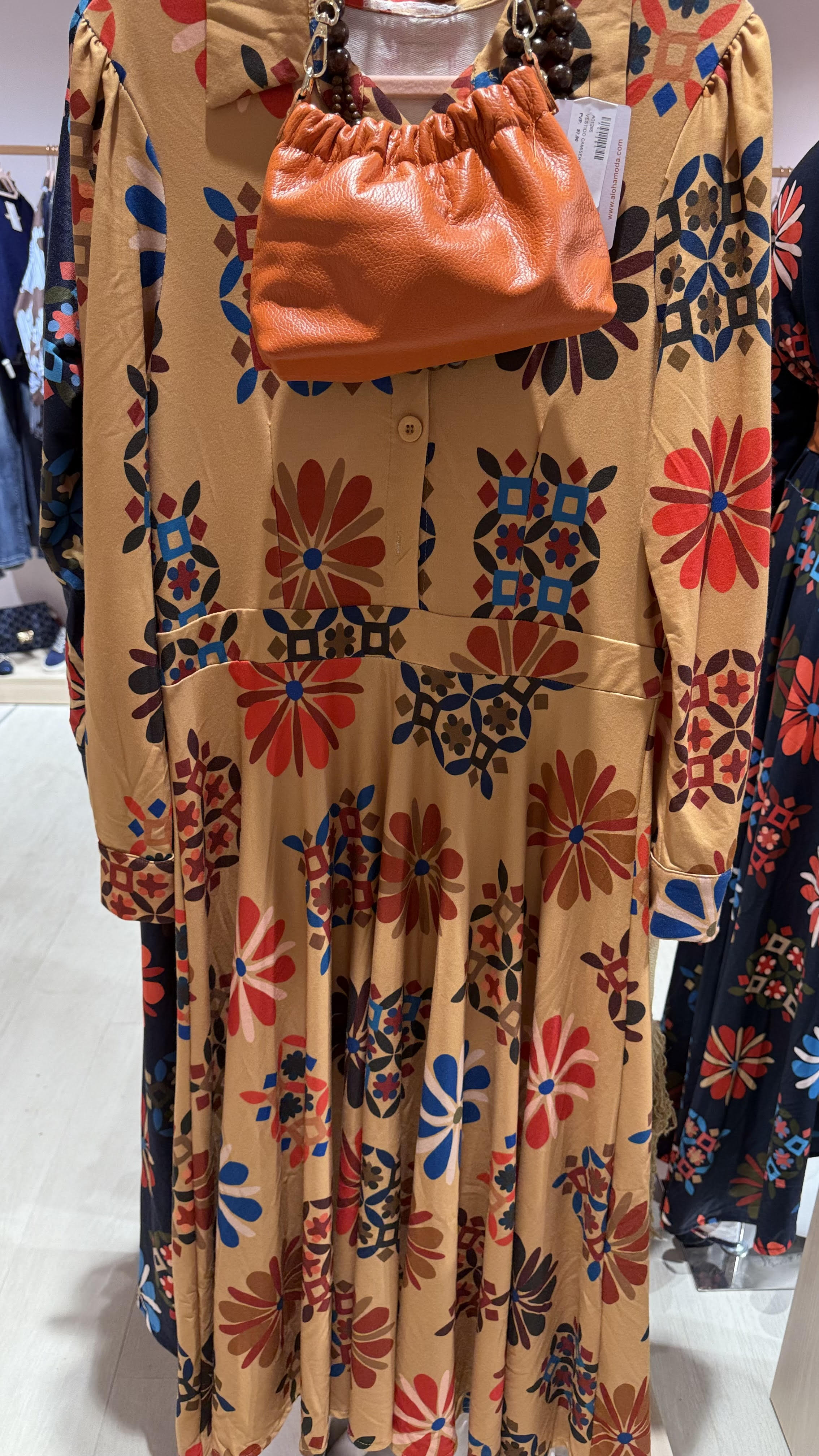 Vestido punto estampado en flores aloha con cuello camisero encolado, talla unica , ideal con unas botas o botin.
